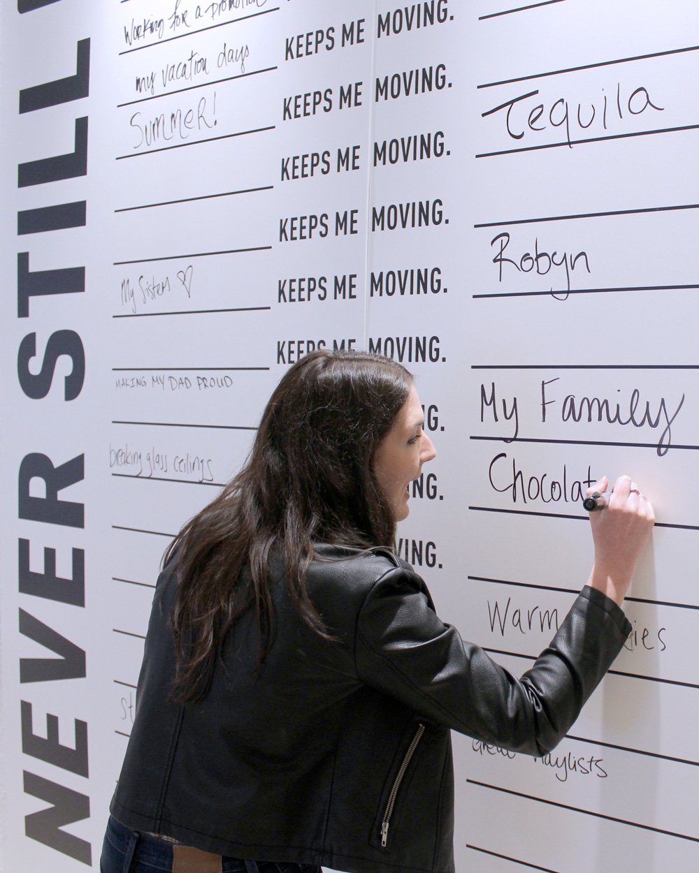 The space featured a series of styled product moments unified by empowering headlines, lifestyle imagery, organic plant elements, and gritty modern pedestals. Each detail was designed to feel bold, elevated, and evoke the constant motion required to live in the city.